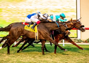 He had no such early challenges in the Del Mar Mile. He controlled the pace with fractions of :23.45, :47.14, and 1:10.72 in the race over firm turf, opened up in the stretch, and had enough to last while not switching leads through the lane. He hit the wire in 1:34.05 and returned $12.20 to win to his $2 mutuel backers.