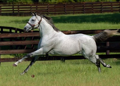 Macho Uno commanded attention early by winning his debut in 2000 at Saratoga Race Course by 2 3/4 lengths for trainer Joe Orseno. After a game, third-place finish in the Hopeful Stakes (G1) five weeks later, he won the Grey Breeders' Cup Stakes (G1) at Woodbine effortlessly by seven lengths. The gray/roan colt followed with a gusty nose victory over future Hall of Famer Point Given in the Breeders' Cup Juvenile (G1) and was honored as the champion 2-year-old colt of 2000.