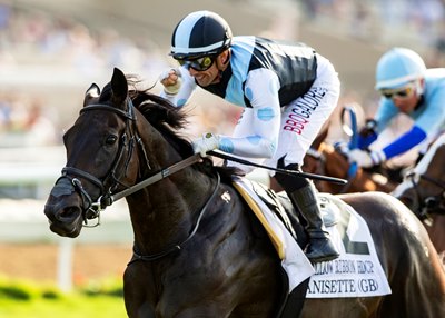 Umberto Rispoli, Anisette's rider in all but one of her eight United States starts since joining Powell's barn in 2023, has the call. Three-for-three at Del Mar, Anisette's always-dangerous closing kick will be tough to beat in Saturday's contest.
