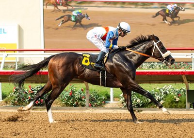 "First time I ran the horse he ran with blinkers on and he got hit from both sides by a couple of horses and I think he got a little scared. So today I took off the blinkers and it worked," Periban said. "He's a nice horse. When he broke from the gate I saw him more focused and I said, 'This is going to be the time.' The horse was ready to go and I got lucky today."