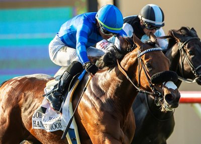 Those skills were on full display Sept. 7 at Del Mar when the 25-year-old won three races, including both of the day's graded stakes: the Del Mar Debutante Stakes (G1) aboard the Bob Baffert-trained Tenma and the John C. Mabee Stakes (G2T) on the Phil D'Amato-trained Hang the Moon . These were his first stakes wins at the seaside oval.