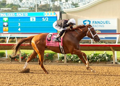 Fifth in the Breeders' Cup Sprint one year ago, The Chosen Vron earned an automatic, fees-paid berth to the race through the Breeders' Cup Challenge Series by winning the July 27 Bing Crosby Stakes (G1) at Del Mar for the second straight year. He recently finished second to Raging Torrent in the Pat O'Brien Stakes (G2) at Del Mar on Aug. 24, only his second defeat in his last 16 starts.