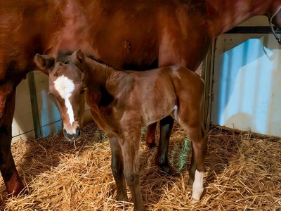 The first reported foal by 2023 Horse of the Year and two-time Breeders' Cup Dirt Mile (G1) winner Cody's Wish was born Jan. 6 at Ramiro Salazar's Phoenix Farm and Racing near Georgetown, Ky.