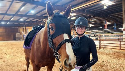 Currently, Aspyn and Arashi are training for the hunter ring with Sam Powell of Paradigm Farm. They also practice lower-level Dressage on their own. "He takes care of Aspyn, and Aspyn takes care of him," Bridgett shared.