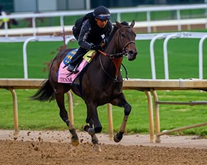 West Coast standout Tenma—trained by Hall of Famer Bob Baffert for owner Baoma Corp. and entered off a victory in the Santa Anita Oaks (G2)—was clocked in splits of :12 and :36. She galloped out five furlongs in 1:01.