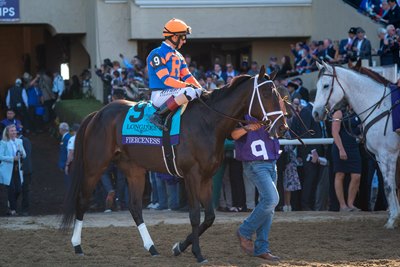 With Fierceness, Pletcher said, "There's kind of two different trains of thought. What's going to be a tougher race to come back in—a mile and a sixteenth with what should be a little bit of an easier early pace? Or a mile race, one-turn, that might be a little bit of a hotter pace? You just never know how some of those things are going to unfold. But, like I said, we're just happy to have both horses and hope both get a clean run at it."