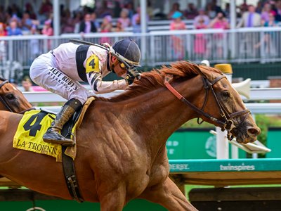 After defeating champion older dirt female Idiomatic last summer to earn her first career grade 1 triumph, Raging Sea added another Eclipse Award winner to her list of the vanquished when she surged to a three-quarter-length victory in the $992,000 La Troienne Stakes (G1) at Churchill Downs May 2, a race that saw defending Horse of the Year Thorpedo Anna put forth a shocking last-place finish.
