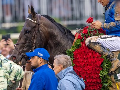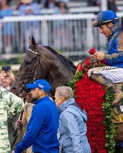 Breaking from post position sixteen at odds of 7-1, Sovereignty bobbled slightly, settling near the rear of the field. Midway on the far turn, race favorite Journalism with Umberto Rispoli, got into fourth position while taking aim on the tiring leaders. Alvarado was following and angled just outside turning into the stretch. Journalism took command in early stretch but Sovereignty took the lead at the sixteenth pole and pulled away to win by 1-1/2-lengths in 2:02.31 for the classic distance of a mile and one-quarter.