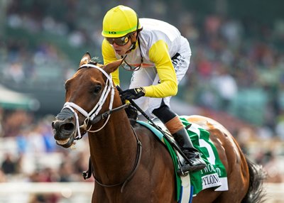 East coast trainer Saffie Joseph, Jr. gave a leg up to Ortiz aboard the Irish-bred Be Your Best in the Gr. I Gamely. After the scratches of Alpha Bella and Where's My Ring, Be Your Best went off at odds of 2-1. The five-year-old mare broke sharply and went straight to the front. At the top of the stretch, Be Your Best left her six rivals behind, drawing clear for a 2-3/4-length win in 1:46.26 for a mile and one-eighth on the grass for fillies and mares three-years-old and up.