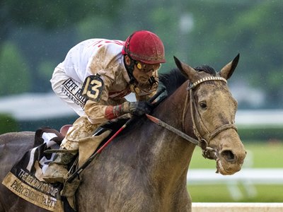 Pin Oak Stud's Parchment Party earned his first stakes win. The 4-year-old stopped the clock in 2:57.86 for the sparingly run 1 3/4-mile distance and returned $16 for a $2 win ticket.