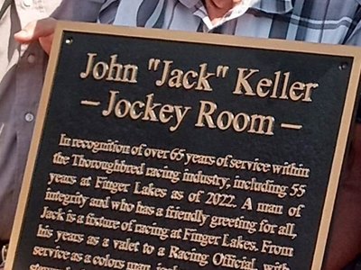 Keller came to Finger Lakes in 1967 and worked as a valet for twenty years, when he transitioned to the race office. He has been Clerk of Scales for 39 years. The Jockey's Room was named in his honor last year.