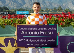 For Fresu, this was his first jockey’s title at Santa Anita. The 33-year-old native of Italy has been riding in the U.S., specifically the Southern California circuit, since April 2023. Fresu ended the Hollywood Meet with 34 wins from 152 mounts (22 percent) to finish four wins clear of runner-up Juan Hernandez. Fresu also had five stakes wins to lead all jockeys.