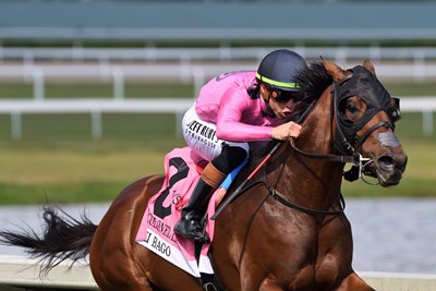 Jose Ortiz has the mount on Mi Bago, the 7-2 second choice on the morning line behind the Flavien Prat-ridden Zulu Kingdom at 7-5. Zulu Kingdom is 5-for-6, his only loss coming when he was seventh in the Breeders' Cup Juvenile Turf (G1T) last fall.