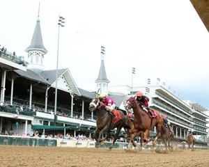 The 4-year-old Constitution filly has an affinity for the Churchill Downs grass, improving her record over the surface to 4-1-0 from six starts with her 3/4-length triumph over Duvet Day Sunday. Long Ago was third.