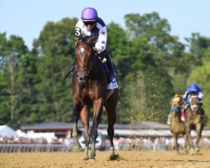 The Coaching Club American Oaks was only the second victory in six lifetime starts for Scottish Lassie, but her previous win was a similarly devastating triumph in last year's scratch-reduced Frizette Stakes (G1), which she took by nine lengths. The Frizette was Scottish Lassie's second career start; she'd finished third to eventual stakes winner Quickick in a seven-furlong maiden special weight at Saratoga on debut. Her only other start at 2 saw her take fourth to Immersive, with Quickick third, in the Breeders' Cup Juvenile Fillies (G1). She'd only made two previous appearances this year, a third in an allowance optional claiming test over a mile at Belmont at The Big A meet, and a third to La Cara in the Acorn Stakes (G1) at Saratoga for owners Sportsmen Stable, Parkland Thoroughbreds, Photos Finish, Corms Racing Stable, and Jorge Abreu—who also trains the filly.
