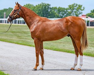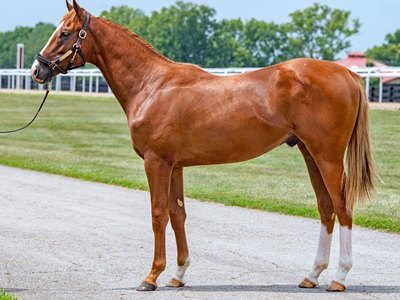 Trainer Michael De Paulo, as agent, purchased Wednesday's sales topper, Hip 109, from the Huntington Stud Farm consignment. The chestnut colt is out of the Into Mischief mare Travieza , an open stakes winner at Santa Anita Park.