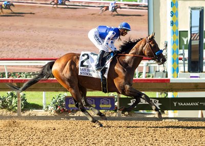 Nysos, winner of the July 26 San Diego Handicap (G2) in his last start, breezed Aug. 21 in preparation for the Pacific Classic, drilling five furlongs in :58 4/5 at Del Mar. He is 5-for-6 with his only loss being a dead-heat second in the Churchill Downs Stakes (G1) in early May when he returned from a 15-month layoff.