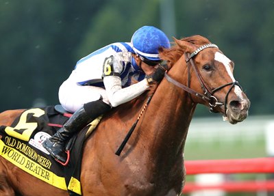 World Beater ran just as his name suggests in the Sept. 6 $503,600 Old Dominion Derby (G3T), overcoming a slow pace and soft turf course to capture his third stakes victory.