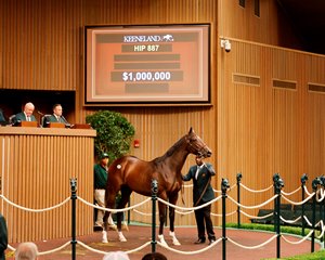 Hip 887 became the 11th yearling by Not This Time to sell for $1 million or more during the ongoing sale that began Sept. 8, and by the end of the session that total had reached 12. The second-ranked sire in North America by 2025 progeny earnings behind Into Mischief , Not This Time stood this past breeding season for $175,000 at Taylor Made Stallions near Nicholasville, Ky.
