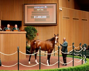Flightline's first crop has been well received so far at the September sale, with 37 sold for an average of $762,973, and eight horses bringing seven figures through Thursday's session. His top offering so far is Hip 338, a filly out of the graded stakes-winning mare Four Graces who sold to LSU Stables for $2.2 million. His highest-priced colt brought $1.7 million from Japanese buyer Naohiro Sakaguchi.