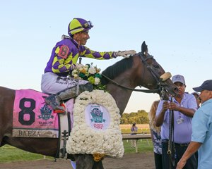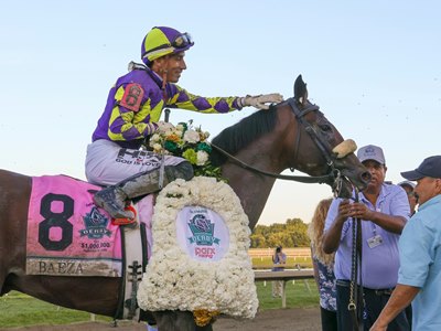 Off as the favorite at 7-5 in the field of 10, Baeza broke from post position eight and raced near the back of the field but not too far behind. Baeza began to move up on the backside as Berrios gave Baeza his cue at the three-eighths pole. Baeza responded and gradually drew away from the field to post an impressive 2-1/4 length win in 1:48.03 for a mile and one-eighth.