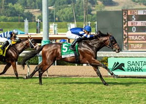 The only shipper in the five-horse field for the Twilight Derby at Santa Anita Park, Test Score brought the best credentials and thus went off the heavy 3-5 favorite. He performed as expected, running down the leaders in the stretch to score by 1 1/2 lengths.