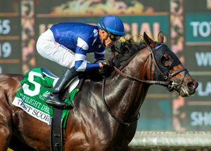 Hernandez made it a stakes double for the day aboard ship-in Test Score in the Gr. II Twilight Derby for east coast trainer Graham Motion. Off as the favorite in the field of five, Test Score raced in fourth on the outside. Hernandez gave Test Score his cue at the quarter pole passing the field in the final furlong to post a 1-1/2 length win in 1:47.66 for the mile and one-eighth turf test.