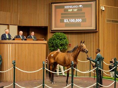 Consigned as Hip 187 by Lane's End, the daughter of Gun Runner was offered as a racing or broodmare prospect.