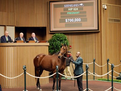 Day 3 of the Keeneland November Breeding Stock Sale got off to a running start when the fourth horse to go through the ring, Taylor Swifter (Hip 624), sold for $700,000 to Pursuit of Success. The daughter of 2015 Triple Crown winner American Pharoah was offered in foal to 2022 Horse of the Year Flightline by Gainesway, agent.