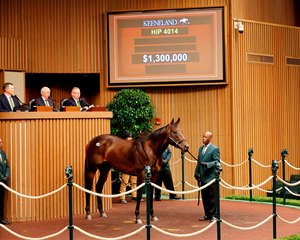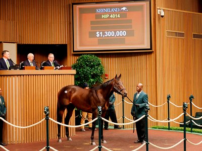 Three-time grade 3 stakes winner Bishops Bay kicked off the opening hour of the Keeneland November Horses of Racing Age Sale by selling for the top price of $1.3 million to Pedro Lanz, agent for KAS Stables. The $1.3 million price is a record for the sale, which Keeneland began in 2022 after including horses of racing age in the November Breeding Stock Sale.