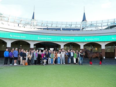 Prior to the eighth race Nov. 16, Churchill Downs hosted a special ceremony honoring their track's winningest horse. Churchill Downs Racetrack president Mike Anderson presented Bango's owners, Fred and Debbie Schwartz of Tamaroak Partners, and trainer Greg Foley with a framed collage of all 15 of Bango's lifetime wins—which included two at Ellis Park and one at Turfway Park. They also received custom Woodford Reserve bottle engraved with Bango's name.