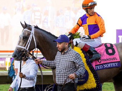 Ted Noffey, 6-1 on the morning line for the latest Kentucky Derby Future Wager taking place this weekend, is coming off an undefeated 2-year-old season. Before his victory in the Oct. 31 Breeders' Cup Juvenile (G1) at Del Mar, he scored victories in the Breeders' Futurity (G1) at Keeneland, and in the Hopeful Stakes (G1) and a maiden race, both at Saratoga Race Course.