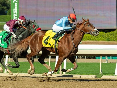 The California-bred ridgling sat a stalking trip behind dueling leaders for jockey Emisael Jaramillo and took command in the stretch, winning by 1 1/4 lengths in 1:05.73. The second choice in a four-horse field, Original One paid $5.20 to win for trainer Hector Palma.