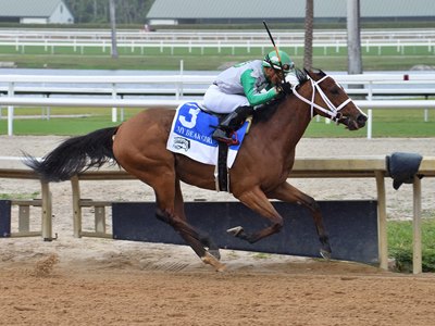 Delgado said, "We're looking forward to it. I know we're coming in 100%. I'm very excited for Saturday. ... Of course, the races will start getting tougher, with more fillies and new fillies with every race. But she seems to handle everything pretty much so far, every distance and every challenge the same.