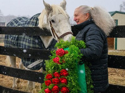 Despite recent rain and snow events, which hampered additional festivities, Old Friends' CEO and president John Nicholson along with founder Michael Blowen welcomed the volunteer team to celebrate and acknowledge the momentous occasion as their equine superstar Silver Charm turned 32 years old Feb. 22.