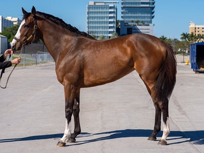 Chris Nolan was the winning bidder on the 5-year-old daughter of Catholic Boy, who was made available for inspection in the Gulfstream Park barn of trainer Jennifer Young. She was consigned by owner Team Adams Racing.