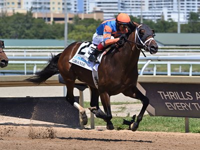 Capitalizing on a lack of pace in the race, Hall of Fame jockey John Velazquez sent Grande to the front in the 1 1/16-mile dirt contest, dictating slow fractions of :24.57, :49.42, and 1:13.56, and his mount maintained an advantage on the second turn and through the stretch. Grande was timed in 1:44.26 on a fast track, returning $2.20 for a $2 win wager as the overwhelming favorite