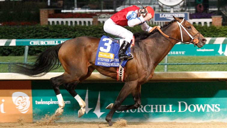 Moonshine Mullin winning the Stephen Foster Handicap. (Photo by Reed Palmer Photography)