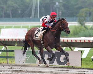 Joseph Sutton's speedy 6-year-old son of Lion Heart won his third race in his last four starts at Monmouth Park, and did it in geared-down fashion late. The Eddie Kenneally-trained horse shot to the front under jockey Joe Bravo on the sloppy Monmouth track, took some pressure early, but led at every call to win the 1 1/16-mile test by 2 1/2 lengths with ease.
