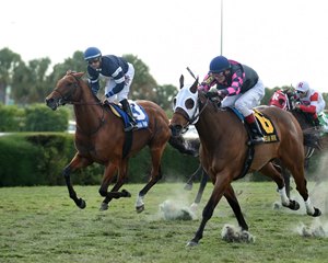 Lubash, who captured the 2014 Tropical Turf, was subsequently awarded his 18th victory after the stewards reviewed the stretch incident that occurred as the field passed the hedge at the end of the turf-course chute.