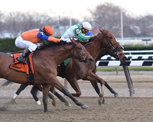 Chester and Mary Broman's homebred Highway Star dug deep in the stretch to get a nose over High Ridge Road in the $250,000 Go for Wand Handicap (gr. III) at Aqueduct Racetrack Dec. 3.