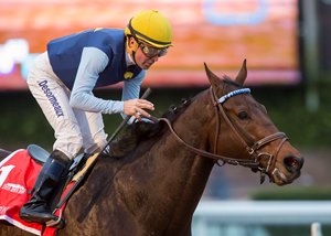 "It was apparent there wasn't any pace in the race," trainer Bob Hess Jr. said. "The other day when he stumbled (out of the gate in the Native Diver), we couldn't have beaten the winner, but I thought we could've been second. He's a big lumbering horse and when he's able to run like this, he's a lot better.