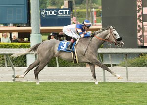 In what may have been her best performance to date, Nick Alexander's homebred Enola Gray rocketed clear of competition three-sixteenths of a mile from home as she went on to win the $100,000 Irish O'Brien Stakes at Santa Anita Park March 18 by a comfortable four lengths under Tyler Baze.