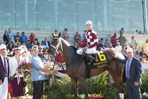 Hill’s hands were still as Farrell made her way to the lead on the final turn, and as they straightened out in the lane, Hill was still tall in the saddle. He asked at the eighth pole and she was able to further separate herself from the pack. After a mile in 1:36.98, it only took Farrell :06.69 to hit the wire.
