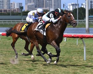 After conceding the lead early to a determined Applicator, War Correspondent snatched that advantage back when it counted most, overtaking the pacesetter in midstretch en route to a one-length victory in the $100,000 Miami Mile Stakes (G3T) April 29 at Gulfstream Park.
