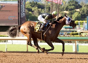 In the 6 1/2-furlong test over a fast track at Santa Anita Park, the Phil D'Amato trainee raced in sixth early in the race before going five wide on the turn and easily opening up on his competition in the stretch.