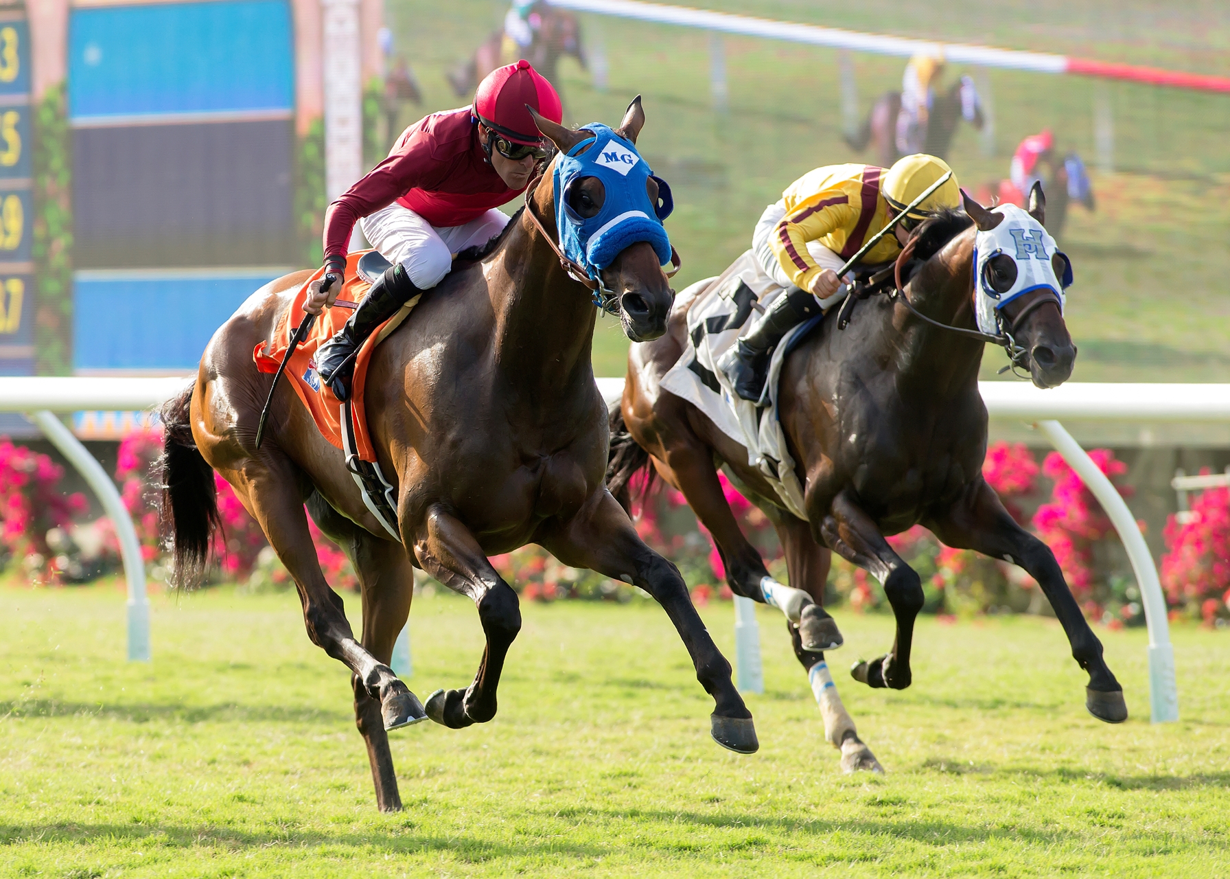 Longshot Placido set the pace, under pressure early from Pioneer Lad, and set fractions of :23.24, :48.29, and 1:12.26 through six furlongs. The two frontrunners were no match from a trio of closers in the stretch, though, which also included Colonist, in his turf debut. The Pioneerof the Nile colt, who finished fourth in the Los Alamitos Derby (G3) last time out, lacked the same kick of the top two, however, and came in third.