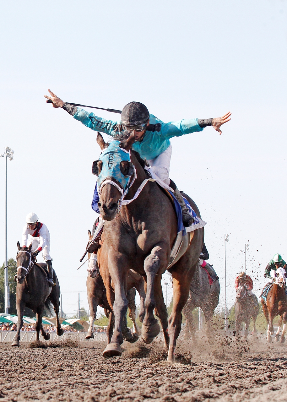 Mach One Rules, trained by Frank Lucarelli, comes in off two stakes victories at the Auburn, Wa., track. In the June 18 $50,000 Budweiser Stakes going 6 1/2 furlongs, the gelded son of Harbor the Gold stalked the pace and was able to get up by three-quarters of a length.