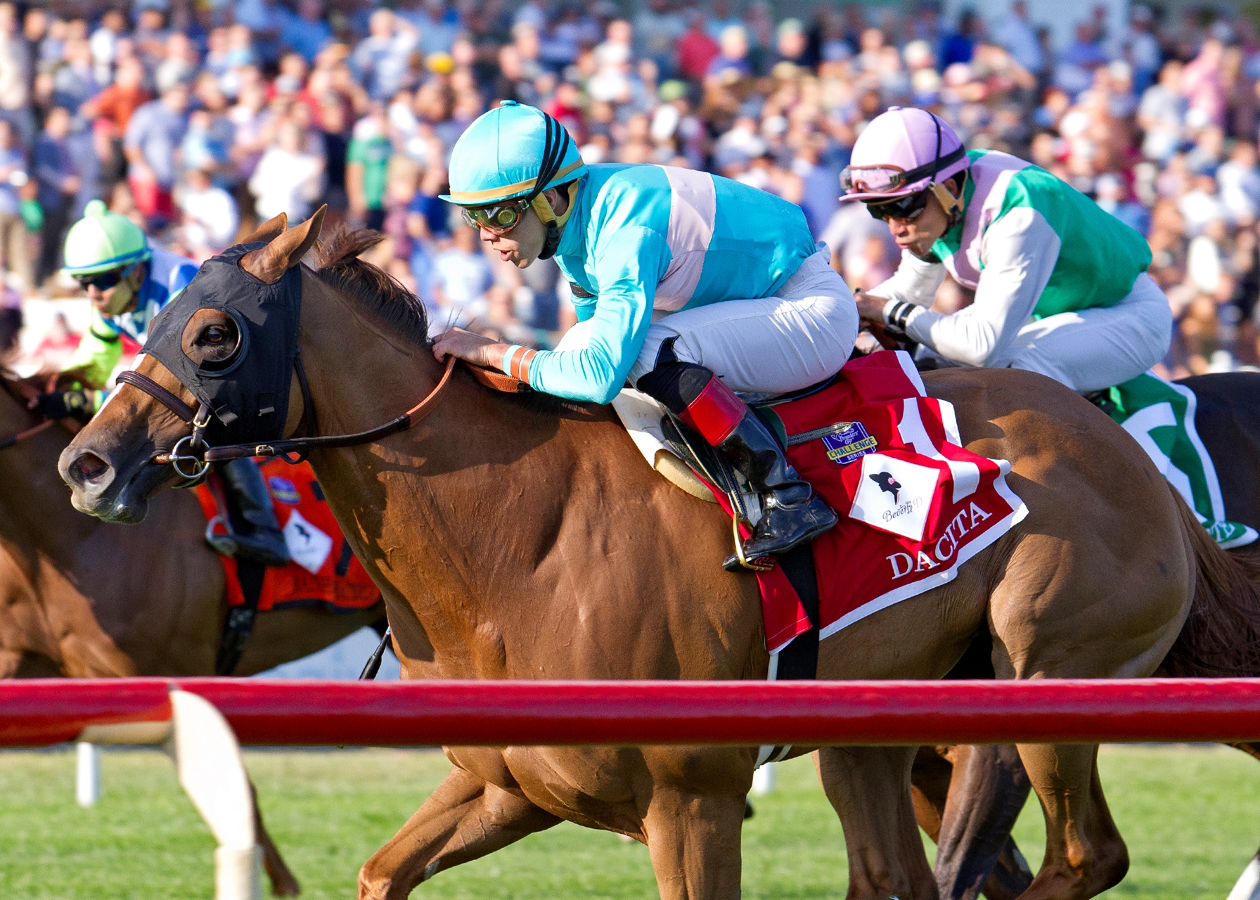With a strong drive in the stretch, Dacita managed to edge out a tough field of 10 fillies and mares to win the $600,000 Beverly D. Stakes (G1T). Dona Bruja and Grand Jete dead-heated for second.