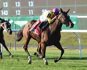 As far back as almost 20 lengths at one point, the Chad Brown trainee unleashed a powerful late run to finish the 1 1/8-mile race for New York-bred fillies and mares in a final time of 1:46.05 over firm turf. It was her second straight win in the event.